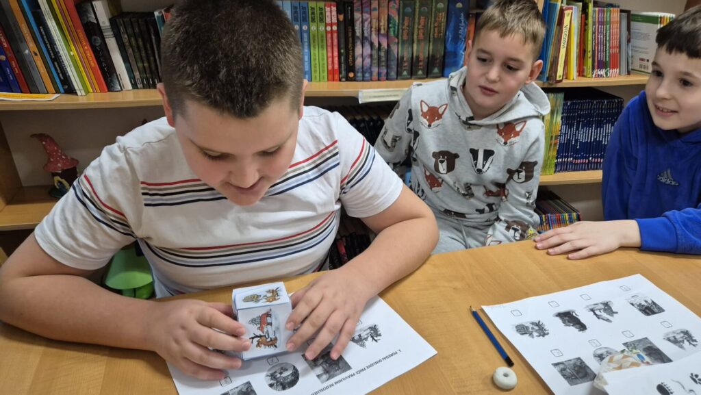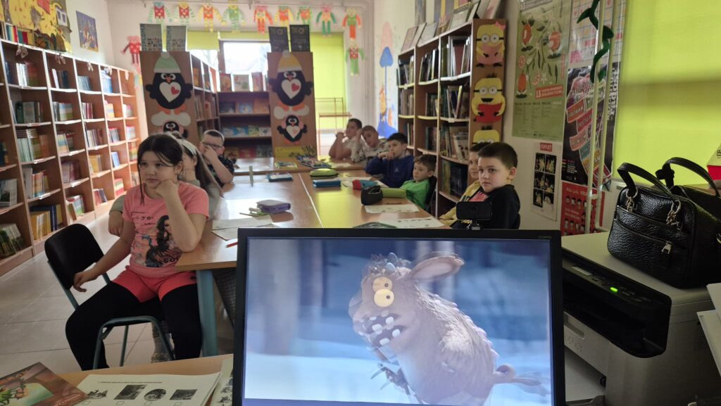 Učenici 3. a razreda danas su u školskoj knjižnici pogledali animirani film Grubzonovo dijete. Budući da film traje 27 minuta, aktivnosti su provedene tijekom dva školska sata. Aktivnosti je osmislila i vodila školska knjižničarka dr. sc. Anita Tufekčić.