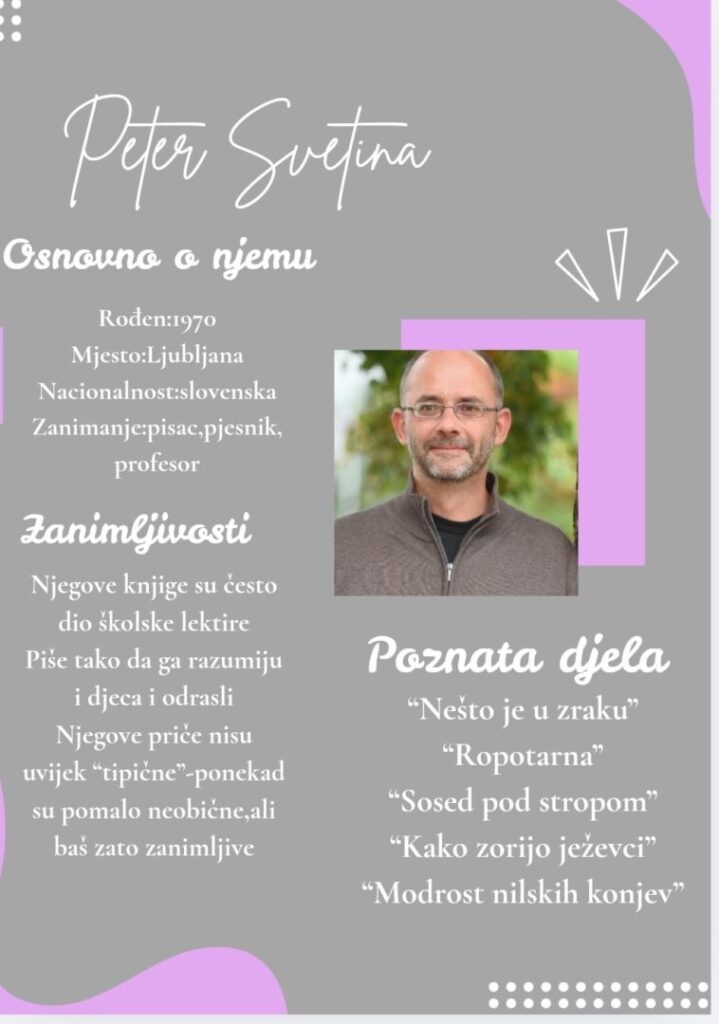 Učenica Mia Garić približila nam je još jednog “NMK 3” autora. Slovenski autor Peter Svetina sve više ulazi na školski lektiri popis. Da saznate zašto, trebali biste pročitati njegove sjajne knjige. Što je to u zraku, potražite u školskoj ponudi NMK knjiga jer čitanje je temelj razvoja jezičnih vještina, mašte i sposobnosti razumijevanja svijeta oko nas!