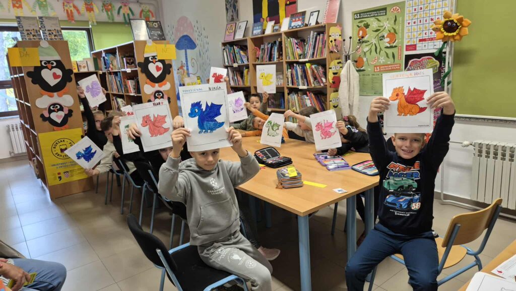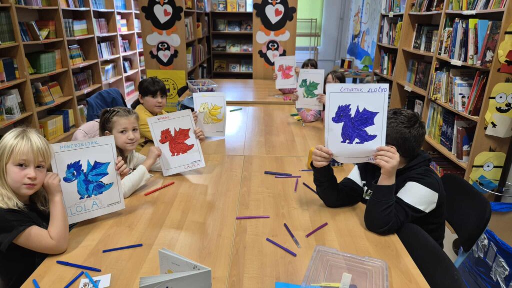 Kroz ovu zabavnu i poučnu priču učenici su naučili kako se trebaju ponašati u knjižnici, kako čuvati knjige te poštovati druge. Nakon priče svaki je učenik dobio svog zmaja kojega je obojao i dao mu ime. Tako su nastali brojni mali zmajevi različitih boja i imena – Lisko, Popko, Loki, Bobi, Rouzi, Šašavko, Lavko i mnogi drugi.