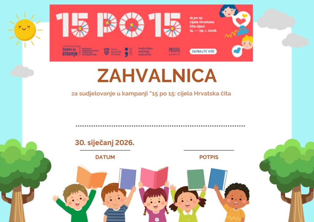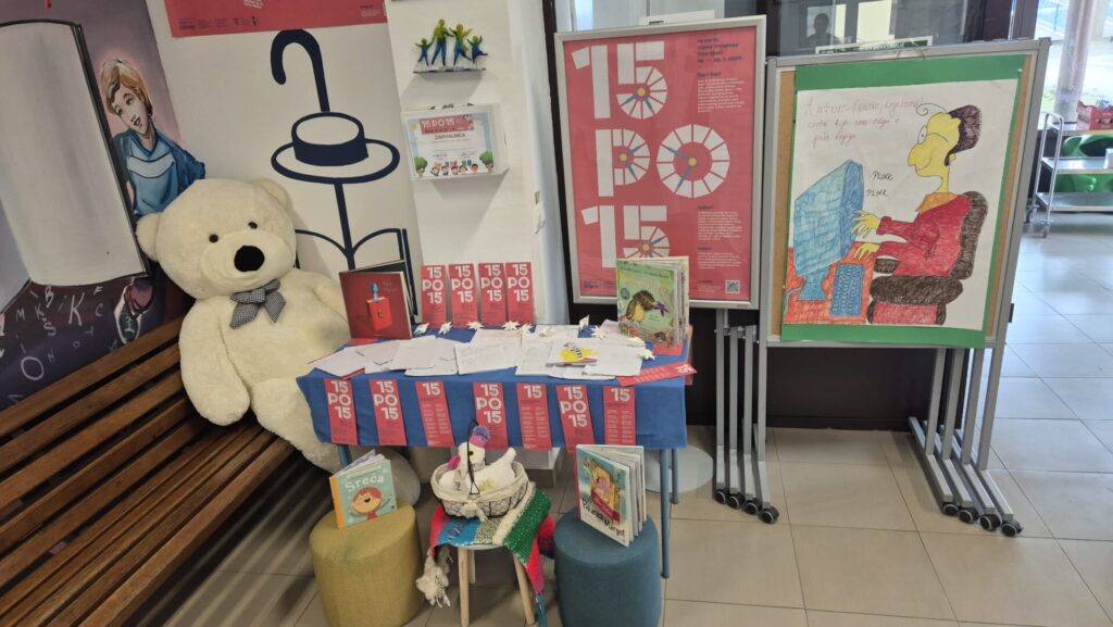 Učenici 2. a razreda, zajedno s učiteljicom Mirjanom, danas su, povodom obilježavanja Svjetskog dana čitanja naglas, posjetili i mini-izložbu nastalu u sklopu kampanje poticanja čitanja „15 po 15: cijela Hrvatska čita“.