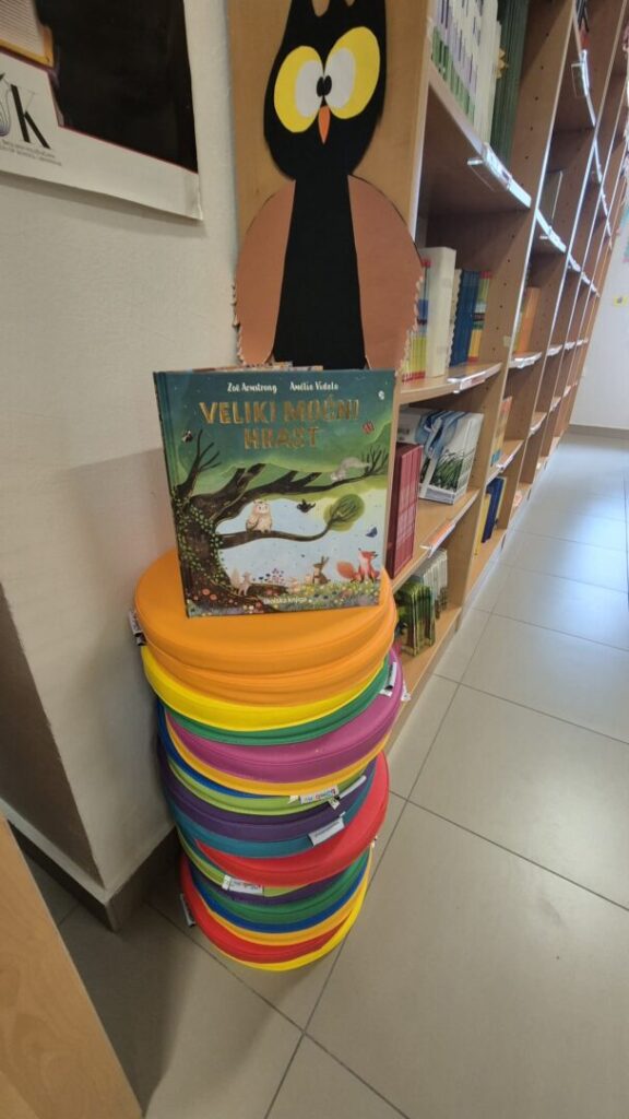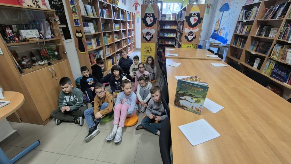 Povodom Svjetskog dana čitanja naglas školska knjižničarka učenicima je čitala slikovnicu „Veliki moćni hrast“. Učenici su sjedili na podnim sjedalicama i s velikom pozornošću slušali priču o hrastu, nakon čega su razgovarali o doživljajima, zanimljivim dijelovima priče te novim riječima koje su upoznali.
