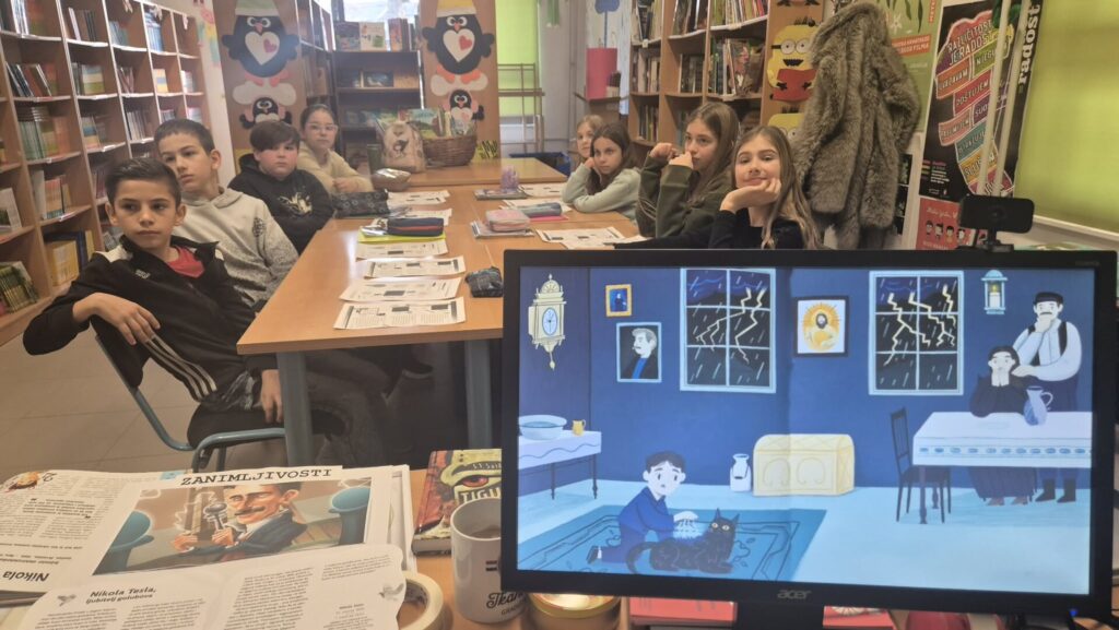 Nakon slušanja priče, školska knjižničarka dr. sc. Anita Tufekčić pročitala je zanimljivosti o Teslinu životu iz knjige „20 iznimnih dječaka koji su promijenili svijet“. Zatim su učenici jedni drugima naglas pročitali po jednu rečenicu iz slikovnice „Mali ljudi, veliki snovi“, čime se dodatno potaknulo zajedničko čitanje i dijeljenje doživljaja pročitanog teksta.