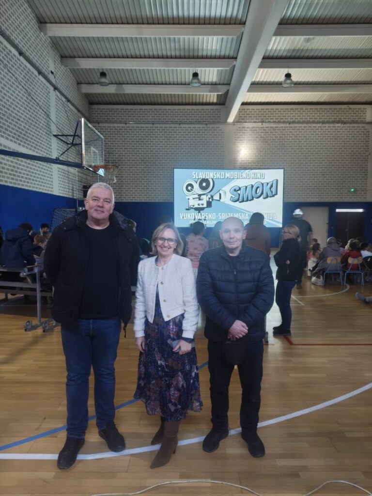 Danas, 28. siječnja 2026. godine, u velikoj dvorani naše škole, održana je kino-projekcija u sklopu projekta „SMOKI“ – Slavonsko mobilno kino, uz podršku Vukovarsko-srijemske županije.