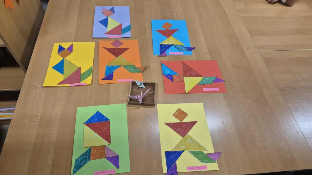 Učenici 4. a razreda upoznali su drevnu kinesku slagalicu Tangram i kroz igru s njezinih sedam dijelova razvijali logičko i prostorno mišljenje, pažnju i kreativnost. Slagli su različite oblike prema predlošku i vlastitoj mašti te kroz zadatke učili planirati i razmišljati poput malih programera. Aktivnost je završila izložbom radova u školskoj knjižnici pod nazivom „Tangram majstori – kodiramo bez tipkovnice!“